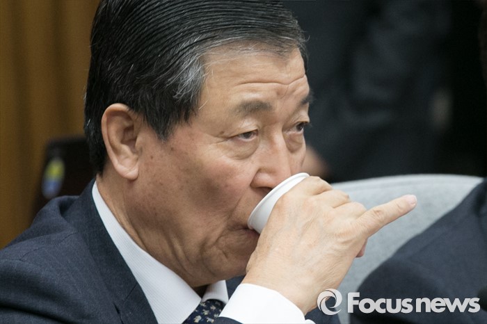 (서울=포커스뉴스) 황진하 새누리당 사무총장이 29일 오전 서울 여의도 국회에서 열린 원내대책회의에 참석해 물을 마시고 있다.
