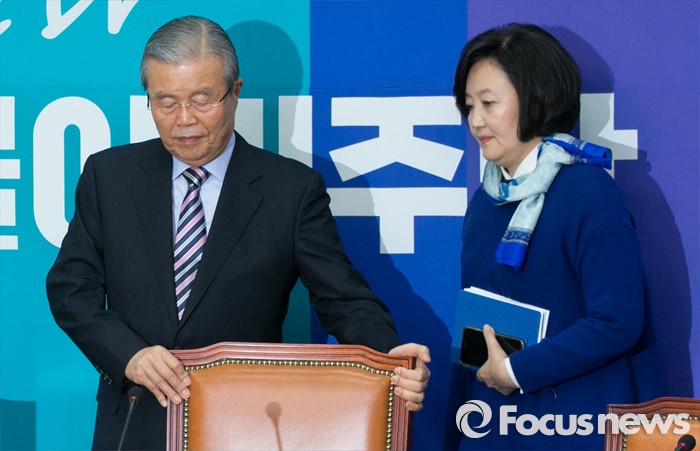 (서울=포커스뉴스) 김종인(왼쪽) 더불어민주당 선대위원장 겸 비대위원장과 박영선 비대위원이 29일 오전 서울 여의도 국회에서 열린 중앙선거대책위원회의에 참석하고 있다.