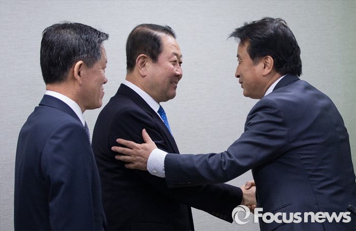 (서울=포커스뉴스) 박주선 의원이 국민의당 김영환 전략위원장의 안내를 받으며 29일 오전 서울 마포구 국민의당 당사에서 열린 기획조정회의에 참석하고 있다.