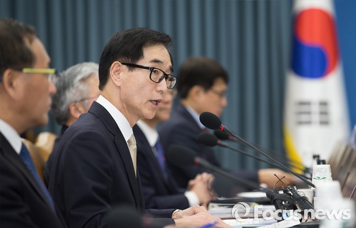 (서울=포커스뉴스) 29일 오전 서울 종로구 정부서울청사에서 열린 사회관계장관회의에 자리한 이준식 사회부총리 겸 교육부장관이 모두발언 하고 있다.