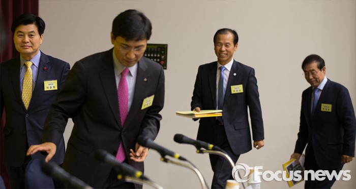 | △ 토크 참석하는 박원순-이춘희-최문순-안희정 |