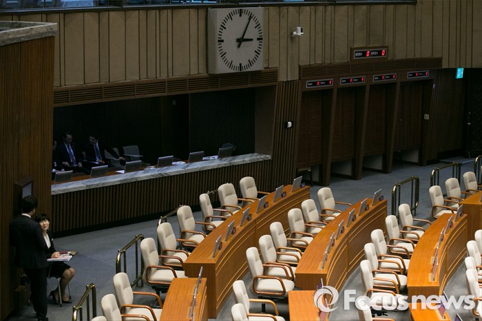 (서울=포커스뉴스) 29일 오후 서울 여의도 국회 본회의장 의원석이 예정된 본회의 개의 시간을 훌쩍 넘기고도 텅 비어 있다. 이날 여야는 본회의를 열어 기업활성화법(일명 '원샷법')을 통과 시키기로 했으나, 최종협상에서 난항을 겪고 있는 것으로 알려졌다.