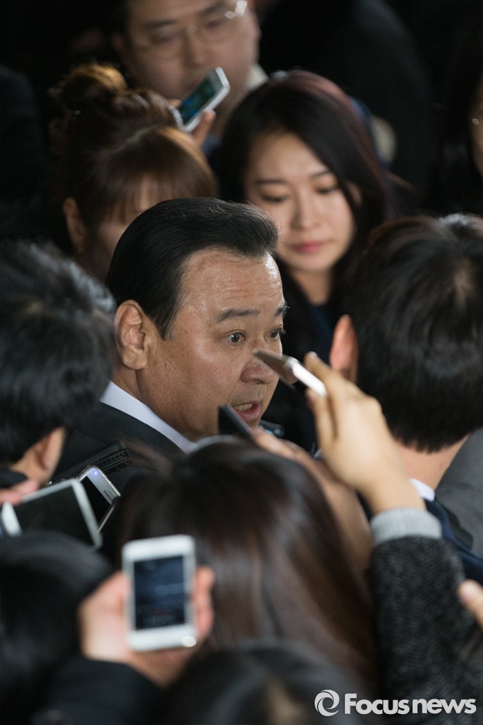 (서울=포커스뉴스) 고 성완종 전 경남기업 회장에게 불법 정치자금 3000만원을 받은 혐의로 기소된 이완구 전 국무총리가 29일 오후 서울중앙지방법원에서 열린 1심 선고공판을 끝내고 취재진의 질문에 답하고 있다. 이날 징역 8개월에 집행유예 2년, 추징금 3000만원을 선고받았다.