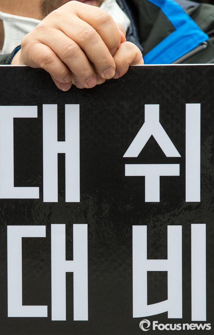 (서울=포커스뉴스) 29일 오후 서울역 광장에서 열린 '한국노총 전국 단위노조 대표자 총력투쟁 결의대회'에 참석한 조합원들이 '부모세대 쉬운해고, 자식세대 비정규직'이 적힌 팻말들 들고 있다.