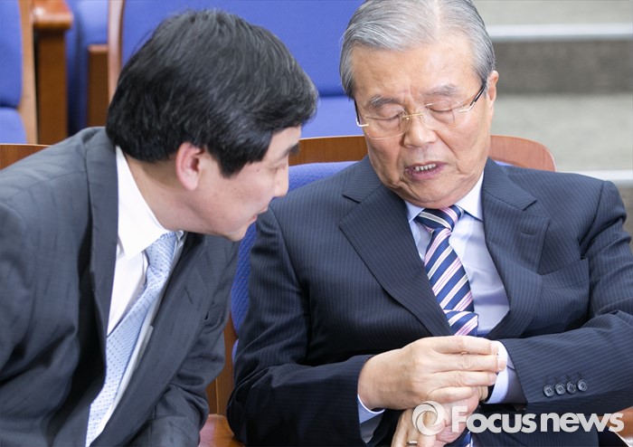 (서울=포커스뉴스) 김종인(오른쪽) 더불어민주당 비대위원장과 이종걸 원내대표가 29일 오후 서울 여의도 국회에서 열린 의원총회에 참석해 대화하고 있다.