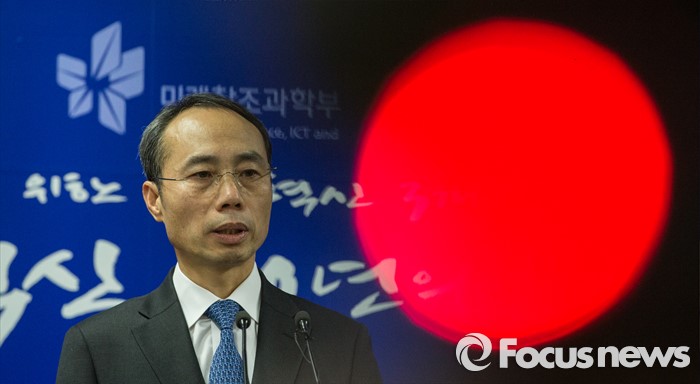 (과천=포커스뉴스) 29일 오후 경기 정부과천청사 미래창조과학부에서 조규조 통신정책국 국장이 제4이동통신 심사 결과를 발표하고 있다.