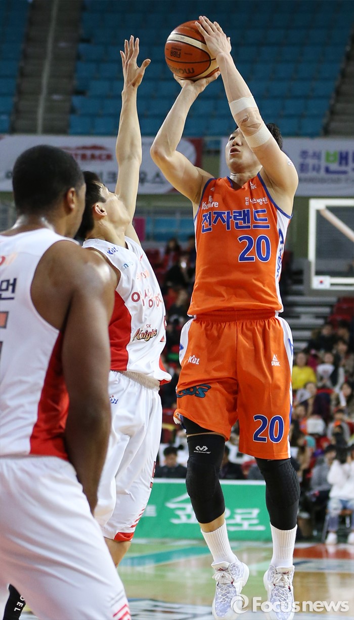 (인천=포커스뉴스) 29일 인천 삼산체육관에서 열린 2015-2016 프로농구 전자랜드-SK 경기에서 전자랜드 정영삼이 SK 김선형의 마크를 받으며 미들슛을 쏘고 있다.