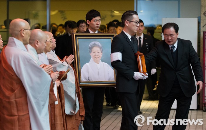 (서울=포커스뉴스) 31일 오전 서울 강남구 삼성서울병원에서 故 최종건 SK그룹 창업주의 아내 노순애 여사 발인식이 진행 되고 있다.