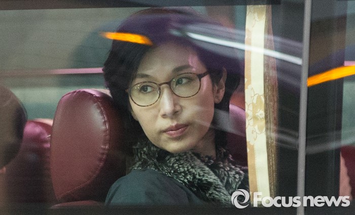 (서울=포커스뉴스) 31일 오전 서울 강남구 삼성서울병원에서 노소영 아트센터 나비 관장이 故 최종건 SK그룹 창업주의 아내 노순애 여사 발인식을 마치고 장지로 향하기 위해 버스에 탑승해 있다.