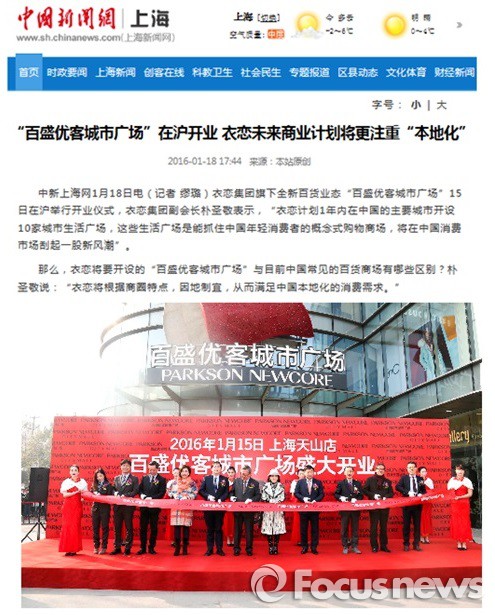 이랜드그룹은 지난 15일 중국 상해 창닝(長寧)지구에 팍슨-뉴코아몰(Parkson-Newcore Mall) 천산점을 그랜드 오픈했다.