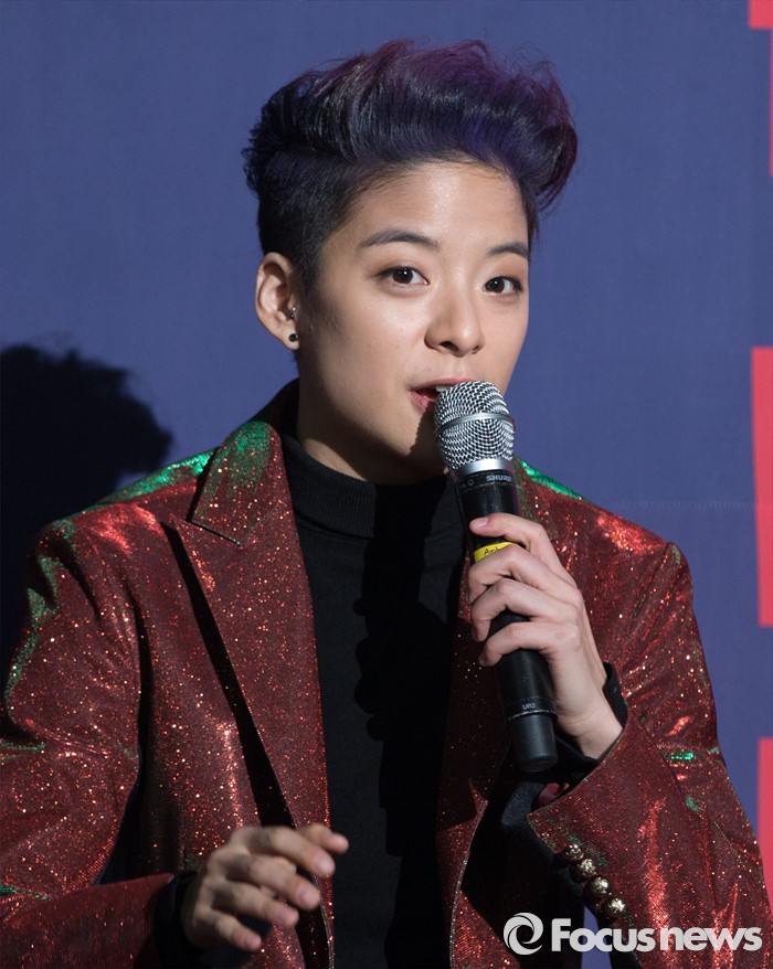(서울=포커스뉴스) 31일 오후 서울 송파구 올림픽공원 올림픽홀에서 걸그룹 f(x) 멤버 엠버가 첫 단독 콘서트 'DIMENSION 4 - Docking Station' 공연에 앞서 취재진 질문에 답하고 있다.
