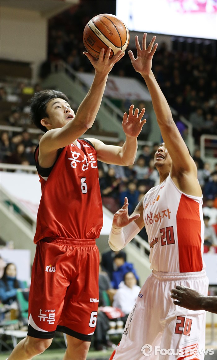 (안양=포커스뉴스) 31일 안양실내체육관에서 열린 2015-2016 프로농구 KGC-SK 경기에서 KGC 강병현이 SK 박승리의 마크를 받으며 레이업슛을 시도하고 있다.