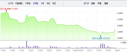 거래소는 부산신항만 매각 추진 보도에 대한 조회공시를 요구했다.현대상선 주가흐름<사진출처=네이버 캡쳐>