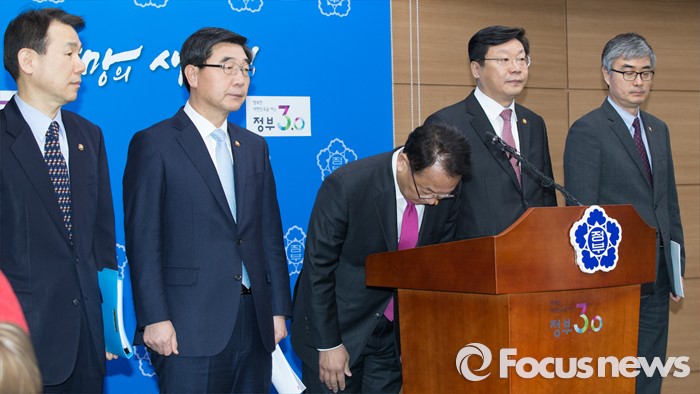(세종=포커스뉴스) 유일호 경제부총리 겸 기획재정부장관이 1일 오전 세종시 정부세종청사 기재부 브리핑룸에서 청년과 아이들의 미래를 위한 국민 여러분께 드리는 말씀 발표를 앞두고 인사하고 있다.