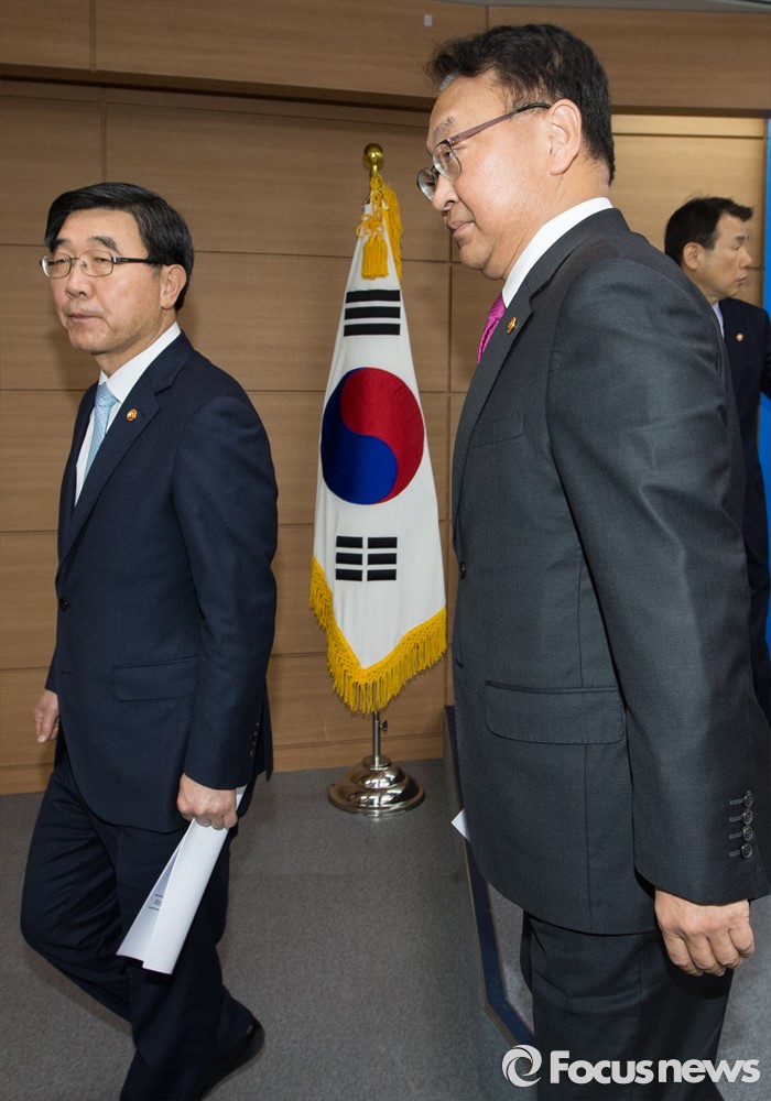 (세종=포커스뉴스) 유일호 경제부총리 겸 기획재정부장관이 1일 오전 세종시 정부세종청사 기재부 브리핑룸에서 청년과 아이들의 미래를 위한 국민 여러분께 드리는 말씀 발표를 마치고 이동하고 있다.