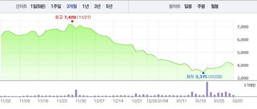 두산인프라코어는 “공작기계 사업부분 매각과 관련해 SC PE 및 다른 매수 희망자들과 협상을 진행할 계획임을 공시한 바 있다”며 “MBK파트너스를 우선협상대상자로 선정하기로 합의하고 배타적 협상권을 부여했다”고 설명했다.두산인프라코어 주가흐름<사진출처=네이버캡쳐>
