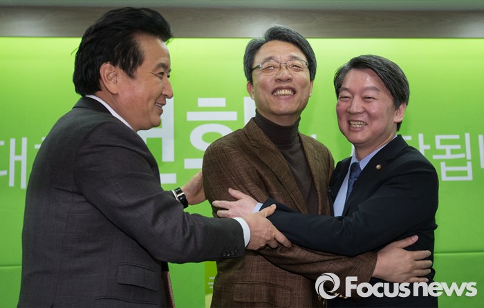 (서울=포커스뉴스) 안철수 국민의당 인재영입위원장(오른쪽)이 1일 오전 서울 마포구 국민의당 당사에서 국민의당 합류 기자회견을 마친 김성식 전 의원과 포옹하고 있다.