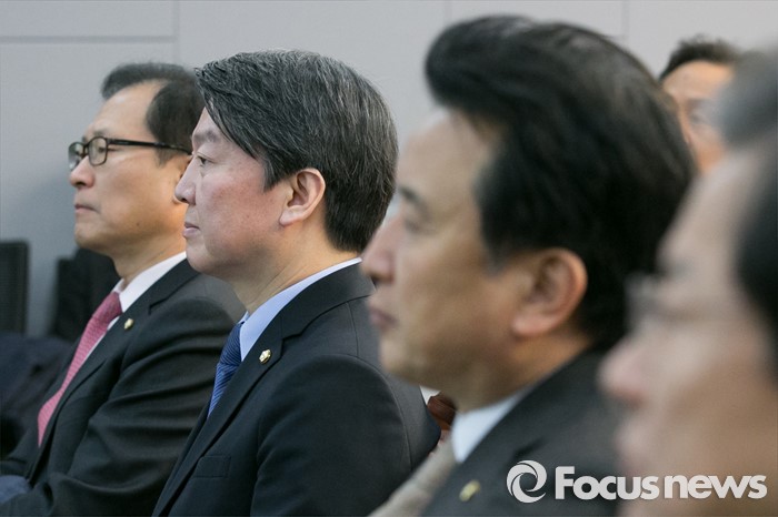 (서울=포커스뉴스) 안철수(왼쪽 두번째) 국민의당 인재영입위원장이 1일 오전 서울 여의도 국회 의원회관에서 열린 '안철수·장하성 경제토크'에 참석해 장하성 교수의 발제를 경청하고 있다.