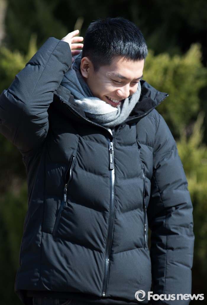 (논산=포커스뉴스) 가수 겸 배우 이승기가 1일 오후 충남 논산 육군훈련소 앞에서 입소하기 전 팬들에게 인사하고 있다.