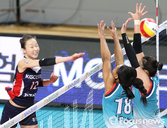 (서울=포커스뉴스) 여자프로배구 KGC인삼공사가 갈길바쁜 현대건설의 발목을 잡았다.