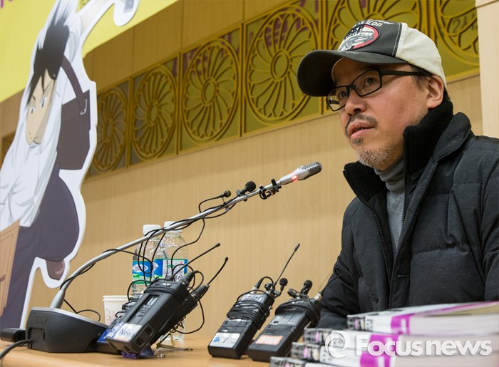| △ 취재진 질문 답하는 윤태호 작가 |