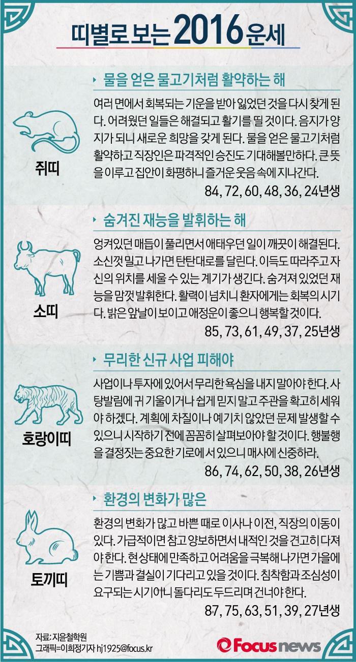 | △ [그래픽] 띠별로 보는 2016년 운세-01 |