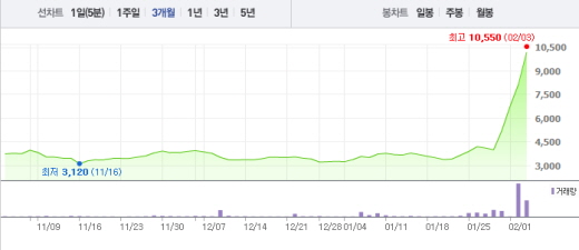 뇌염백신, 인플루엔자 백신의 생산원료를 공급하는 오리엔트바이오도 상승세를 기록 중이다. 오리엔트바이오는 10.80%(175원) 오른 1795원에 거래되고 있다.
