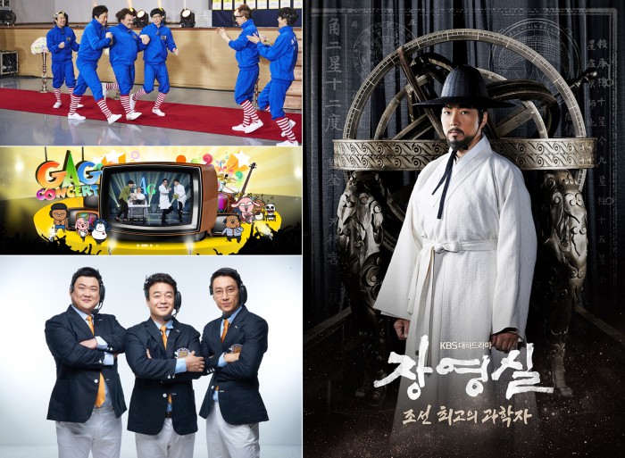 인기 예능 프로그램도 시청자를 다시 찾을 준비를 마쳤다. MBC 장수 예능 프로그램 '무한도전 스페셜' 편은 오는 9일 오후 1시 40분 방송된다. 1인 방송 대결 프로그램 '마이 리틀 텔레비전'은 '스페셜 전설의 대첩' 편을 오는 9일 오후 3시 25분 방송한다. 혼자 사는 유명인들의 일상을 관찰 카메라 형태로 담은 다큐멘터리 형식의 예능 프로그램 '나 혼자 산다'도 설 특집 재방송 된다. '설에도 나 혼자 산다'는 오는 10일 오후 3시 35분 방송.설 연휴 동안 다양한 드라마, 예능 프로그램이 재편성돼 시청자를 기다리고 있다. 왼쪽 위부터 시계방향으로 MBC '무한도전', KBS1 '장영실', SBS '토요일이 좋다-백종원의 3대천왕', KBS2 '개그콘서트'. <사진제공=SBS, MBC, KBS>
