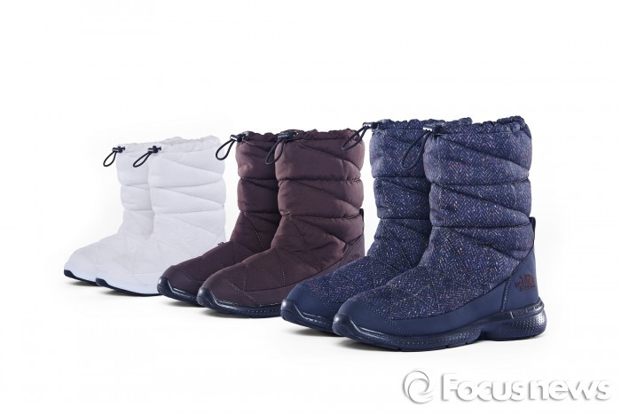 이 외에도 신학기를 대비한 백팩 제품도 준비됐다. 전면과 내부에 주머니를 만들어 실용적인 ‘키즈 베이직 스쿨 팩’(KIDS BASIC SCHOOL PACK)은 △블루 △레드 △그레이 세가지 색상으로 구성됐다. ‘핫샷’(HOT SHOT)은 가방 내부에 노트북이나 전자기기 등을 수납하기 좋고, 가슴벨트에 호루라기를 달아 비상시에 도움을 요청할 수 있다. 색상은 △네이비 △실버그레이 △다크 그레이 △블랙 등이다. 가격은 각 9만8000원, 11만원.다운 부츠 '15 우먼 부띠' <사진제공=노스페이스>