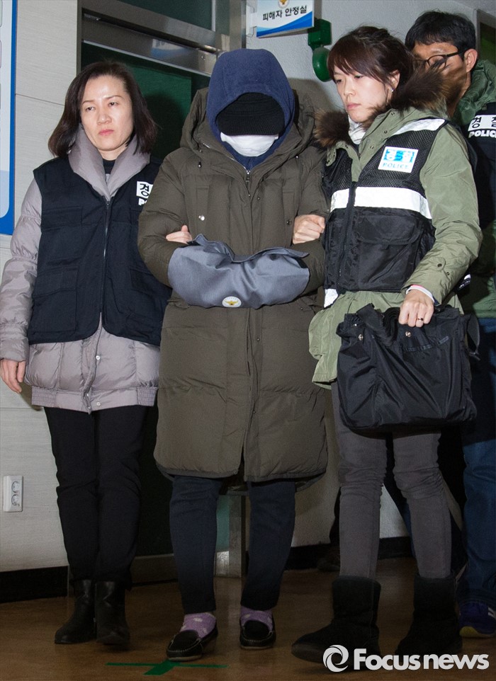 경찰 관계자는 “살인 혐의 적용 여부는 아직 검토 중이며, 수사 진행과 법률적 검토를 거쳐 검찰에 송치 시 적용할 수도 있다”고 밝혔다.(부천=포커스뉴스) 여중생 딸을 때려 숨지게 한 뒤 시신을 집안에 방치한 혐의를 받은 계모 B씨(40)가 3일 오후 경기도 부천 소사경찰서를 나와 유치장으로 이동하고 있다.2016.02.03 김흥구 기자