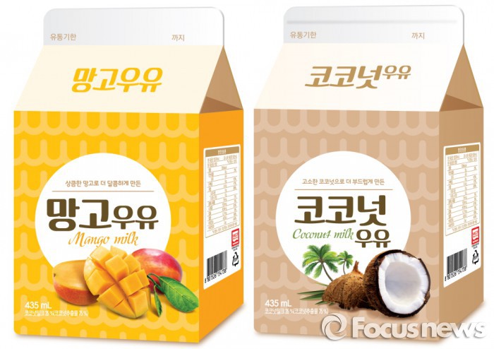 이번에 선보인 망고우유와 코코넛우유는 남양유업에서 직접 생산하고 관리하는 신선한 원유와 유크림, 실제 과즙을 사용했다. 용량은 435㎖, 판매가는 각 1500원이다.