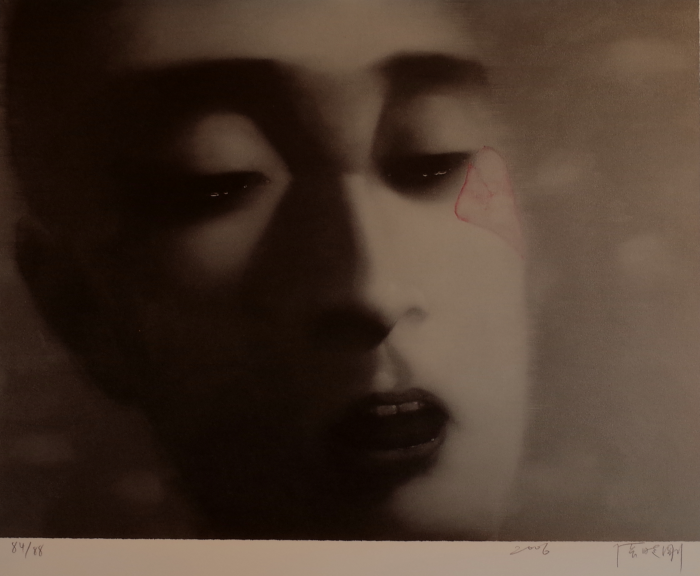 성석남 ab갤러리 관장은 "이번 전시는 국내 미술 애호가의 관심을 받고 있다. 정작 고가의 원작들이라 만날 수 없었던 세계적 아티스트의 오리지널 작품을 감상하고 판화본으로 소장할 수 있는 기회다"라고 밝혔다.중국 현대미술계에서 주목받고 있는 작가 장샤오강의 작품 'Amnesia and memory_face'. <사진제공=ab갤러리>
