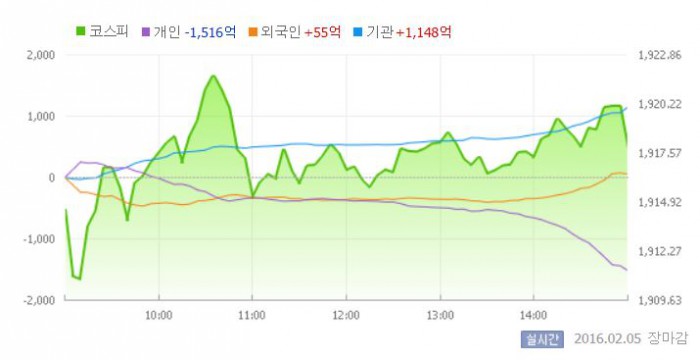 5일 코스피지수는 전일 대비 0.08%(1.53포인트) 오른 1917.79에 장을 마쳤다. 코스닥지수는 전날 보다 0.34%(2.31포인트) 내린 681.31에 마감했다.