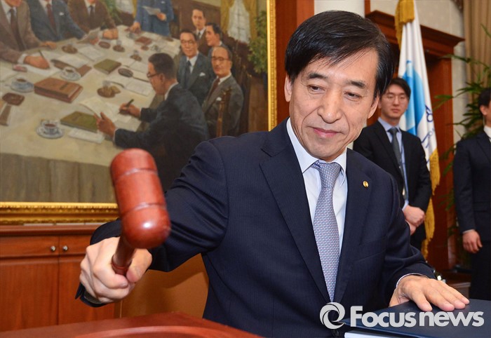 또 "통화금융대책반 관련 주요 부서장들이 회의소집에 즉각 응할 수 있도록 비상연락체계를 유지하겠다"고 덧붙였다.(서울=포커스뉴스) 이주열 한국은행 총재가 14일 서울 중구 한국은행 본관에서 열린 금융통화위원회의에서 의사봉을 두드리고 있다. 2016.01.14 김흥구 기자