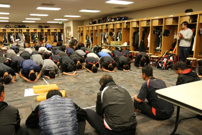(서울=포커스뉴스) 프로야구 kt 선수들이 미국 전지훈련캠프에서 설날을 맞아 스승들에게 단체 새배를 하며 설날 기분을 느꼈다.