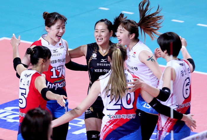 한국도로공사는 외국인선수 시크라가 자신의 시즌 1경기 최다기록인 39득점으로 맹활약했다. 정대영(13득점)의 득점지원도 있었다. 김미연, 고예림, 장소연(이상 7득점) 황민경(6득점) 등 다양한 득점루트로 IBK기업은행의 수비를 흔들었다. 반면 IBK기업은행은 외국인선수 맥마혼이 28득점으로 힘을 내고, 박정아가 블로킹 5득점 포함해 16득점으로 지원사격했지만 연승을 이어가기는 역부족이었다.여자프로배구 한국도로공사가 9일 열린 IBK기업은행과의 경기에서 승리하며 3연승을 달렸다. 한국도로공사 선수들이 득점 뒤 환호하고 있다. <사진제공=한국도로공사>