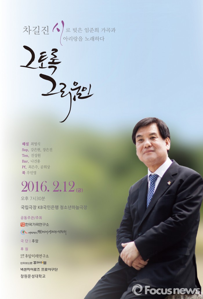 이번 공연을 준비한 한국가곡연구소는 한국예술가곡을 글로벌 브랜드로 만들어 널리 알리는 단체다. 최영식 한국가곡연구소 소장은 "한국 가곡은 시를 음악에 얹어 만든 음악이다. 매년 시인을 정해서 가곡을 공연하는데, 2016년 첫 번째 기획으로 '차길진 시로 빚은 임준희 가곡'을 준비했다"고 말했다.