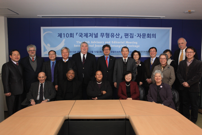 '국제저널 무형유산'은 무형유산 분야 세계 최초의 국제저널로 출발해 '예술 및 인문학논문 인용색인(A&HCI: Arts & Humanities Citation Index)' 등 주요 학술지 색인에 등재되어 있다. 2006년 창간호를 발간한 이래 연 1회씩, 총 10권의 영문판과 국문판을 발간해왔다.지난 2015년 2월 서울 종로구 국립민속박물관에서 열린 '제10회 국제저널 무형유산 편집·자문회의'에 참석한 편집위원들이 단체사진을 찍고 있다.<사진제공=문화체육관광부>