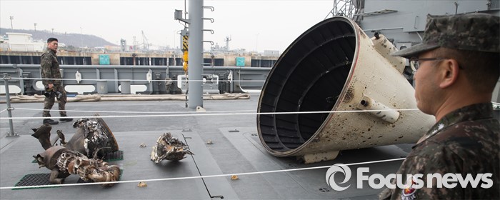 해군은 이날 “북한이 미사일을 발사한 날인 7일부터 추진체 탐색작전에 참가한 링스(Lynx) 해상작전헬기가 제주 서남방 145㎞ 해상에서 페어링으로 추정되는 해상부유 잔해물 1개를 탐색해 이지스구축함 서애류성룡함이 이를 수거해 국방과학연구소로 이송했다”고 밝혔다.