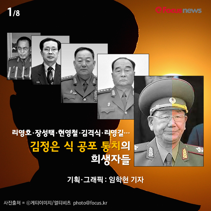 (서울=포커스뉴스) 북한 군 내에서 서열 3위였던 리영길 총참모장이 지난 2월2일 처형됐다는 소식이 국내에 전해졌습니다. 김정은 집권 이후 처형 된 북한군 고위 간부는 누구이고 또 처형의 이유는 무엇인지 카드뉴스로 알아보시죠.