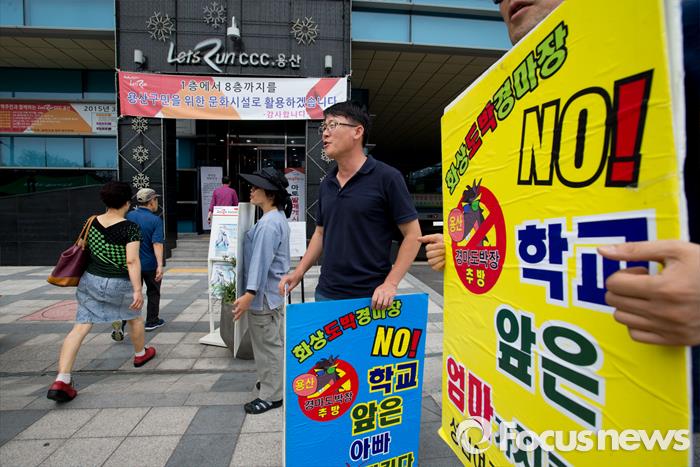 (서울=포커스뉴스) 화상경마장 건물에 ‘키즈카페’를 설치할 수 있다는 법원 판결에 대해 용산 화상경마도박장 추방대책위원회(이하 대책위)가 규탄의 목소리를 냈다.