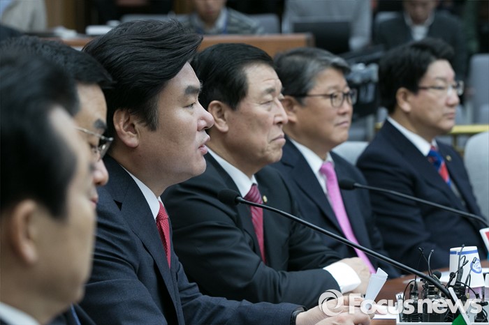 이어 "입으로만 유능한 경제정당을 외치고 경제위기를 논하는 것은 모순"이라면서 "야당이 상황의 심각성을 인식한다면 경제법안 처리에 전향적 자세로 나와야 한다"고 강조했다.원유철(왼쪽 세번째) 새누리당 원내대표가 16일 오전 서울 여의도 국회에서 열린 원내대책회의에 참석해 모두발언하고 있다. 2016.02.16 박철중 기자