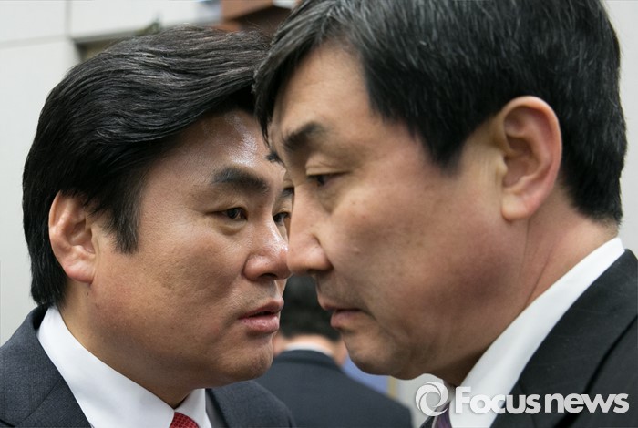이어 "인구 기준일이나 상·하한 인구수, 시도별로 배정하는 의원 수 등은 미세하게 조정할 게 남았다"며 "18일에 논의해 마무리할 예정"이라고 밝혔다.(서울=포커스뉴스) 16일 오후 서울 여의도 국회에서 국회법 개정안(국회선진화법) 논의를 위해 열린 운영위원회 전체회의에 참석한 원유철(왼쪽) 새누리당 원내대표와 이종걸 더불어민주당 원내대표가 대화하고 있다. 2016.02.16 박동욱 기자