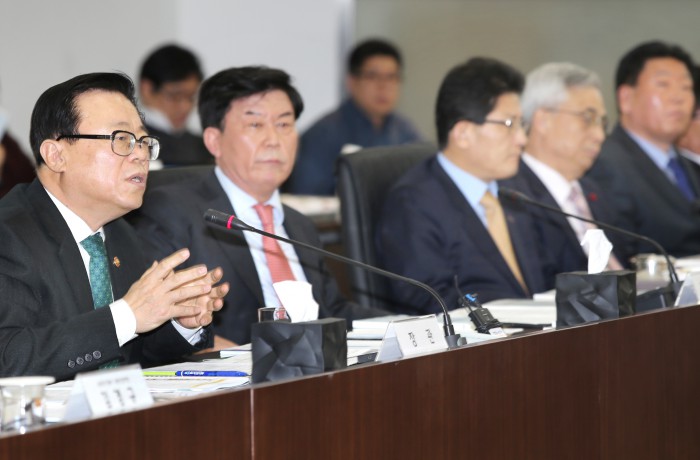 한편, 농식품부는 농식품 수출 확대를 위한 정책을 발표하고 해외 시장정보 분석·제공, 해외 온라인 쇼핑몰․백화점 등에 한국 농식품 판매관을 개설하는 등 해외 마케팅을 적극 지원해 나가기로 했다.이동필 농축산부 장관(맨 왼쪽)이 업계 현안에 대해 답변하고 있다.<사진제공=중기중앙회>
