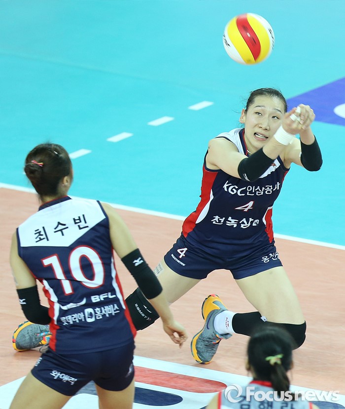 이날 승리한 KGC인삼공사는 2연패에서 벗어나며 6승 20패를 기록했다. 올시즌 도로공사를 상대로 상대전적에서도 3승 3패 동률을 기록했다. 반면 3위 흥국생명(승점 41점)을 추격하기 위해 반드시 승리가 필요했던 도로공사는 12승 15패를 기록하게 됐고 승점 1점을 추가는데 그치며 37점으로 흥국생명과 4점의 승점차를 보이게 됐다.(인천=포커스뉴스) KGC인삼공사 선수들의 경기 장면(자료사진) 2016.01.03 우정식 기자