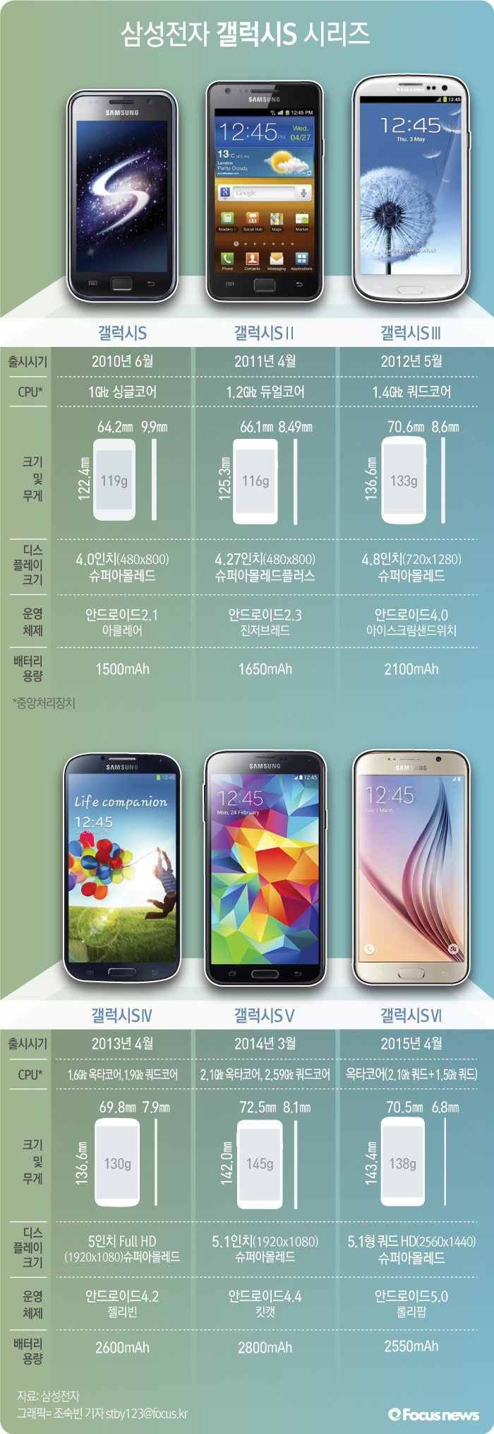 (서울=포커스뉴스) 프리미엄 스마트폰 역사의 중심에 서 있는 삼성전자의 '갤럭시S' 시리즈가 어느새 7번째 제품 공개를 앞두고 있다. 지난 2010년 '갤럭시S'의 첫 등장부터 지난해 출시된 '갤럭시S6'까지의 발자취를 짚었다.