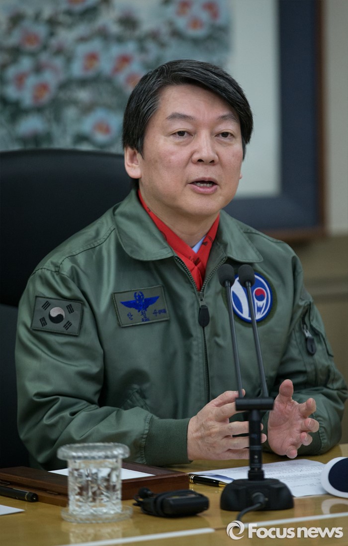 안 공동대표는 공군 점퍼와 붉은 머플러를 맨 차림으로 "안보가 튼튼한 상황에서만 그 위에 집을 짓고 경제활동도 가능하고 외교활동도 가능하다"고 강조했다.