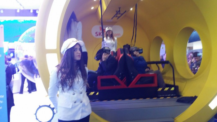 평창올림픽 주관통신사 답게 VR체험 공간은 스키점프대로 꾸몄다. 관람객들은 스키점프대에 올라 기어VR을 쓰고 바(bar)을 당기거나 밀면서 속도를 조절했다. 영국에서 온 오웬은 “정말 신기했다”며 “내가 스키점프 선수가 돼 하늘을 나는 느낌이 그대로 전달됐다”고 소감을 말했다.