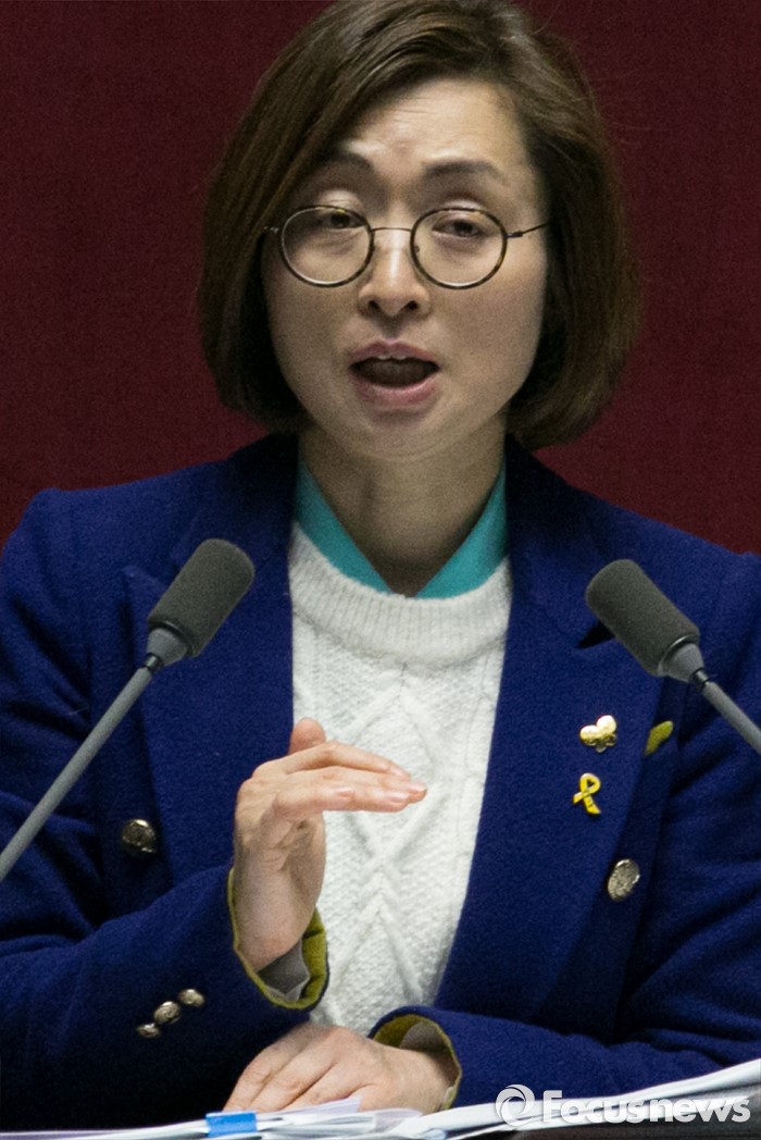 (서울=포커스뉴스) 은수미 더불어민주당 의원이 24일 오전 서울 여의도 국회 본회의장에서 테러방지법과 관련해, 무제한 토론을 하고 있다.