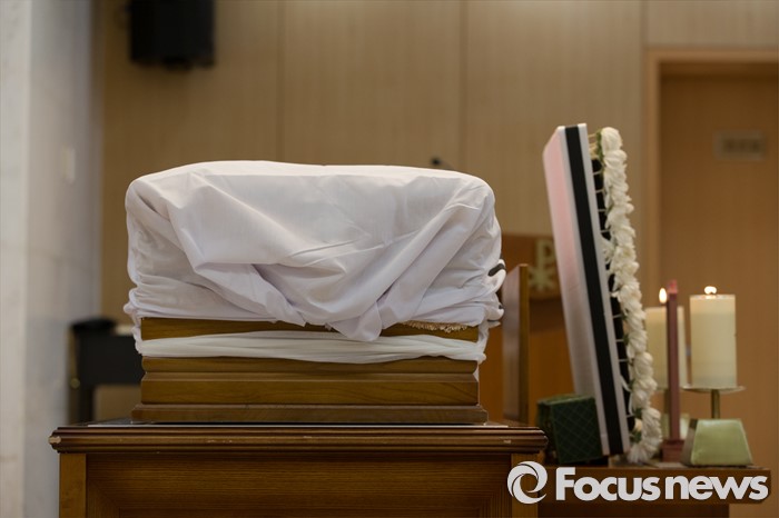(서울=포커스뉴스) 24일 오전 서울 서초구 서울성모병원에서 故 이기택 전 민주당 총재의 발인 예배가 진행되고 있다.